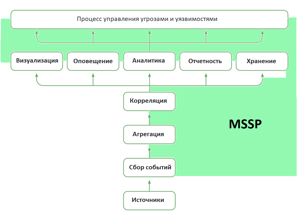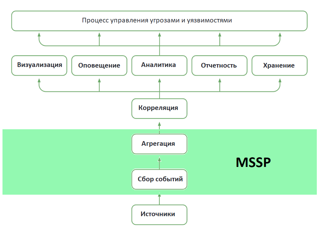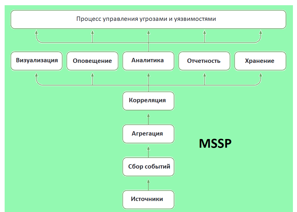 MSSP обрабатывает: Получение событий из систем организации, сбор и агрегирование.