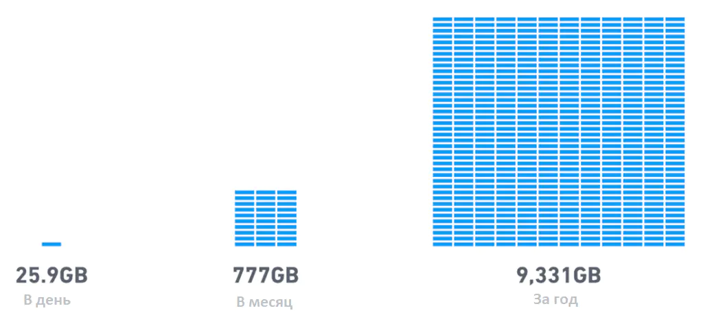 Согласно эмпирическому правилу, среднее событие занимает 300 байт. Таким образом, для каждой 1 000 EPS (86,4 млн. событий в день) SIEM необходимо хранить: