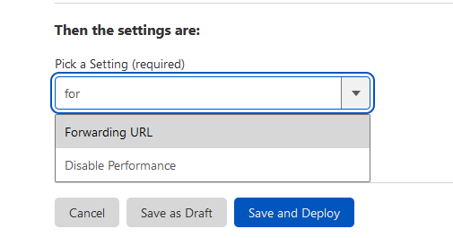 - В разделе Pick a Setting выберите Forwarding URL из выпадающего меню.