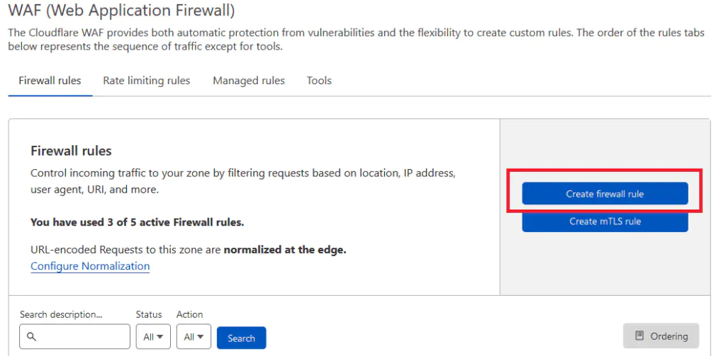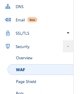 Переходим в настройки межсетевого экрана (WAF)