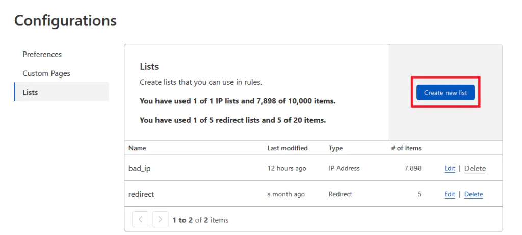 Данный список является более удобный, так как список можно использовать для всех сайтов на аккаунте.