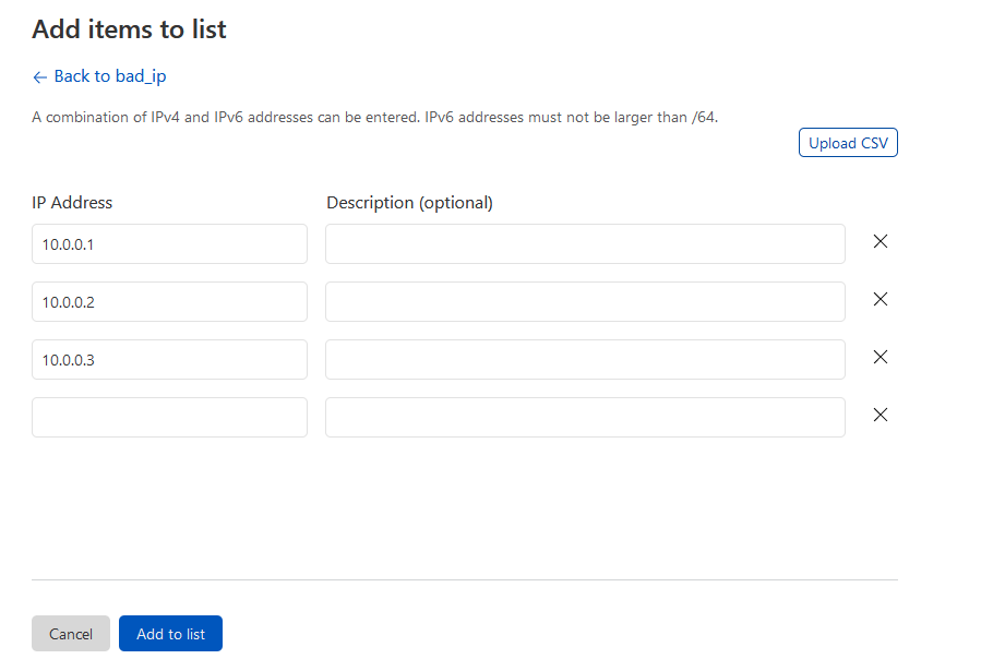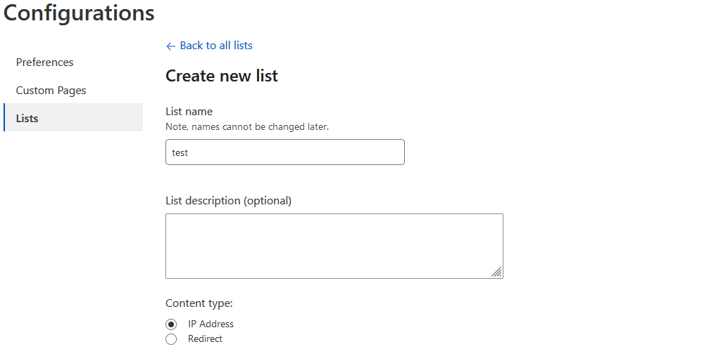 Указываем имя списка, в качестве типа выбираем "IP Address"