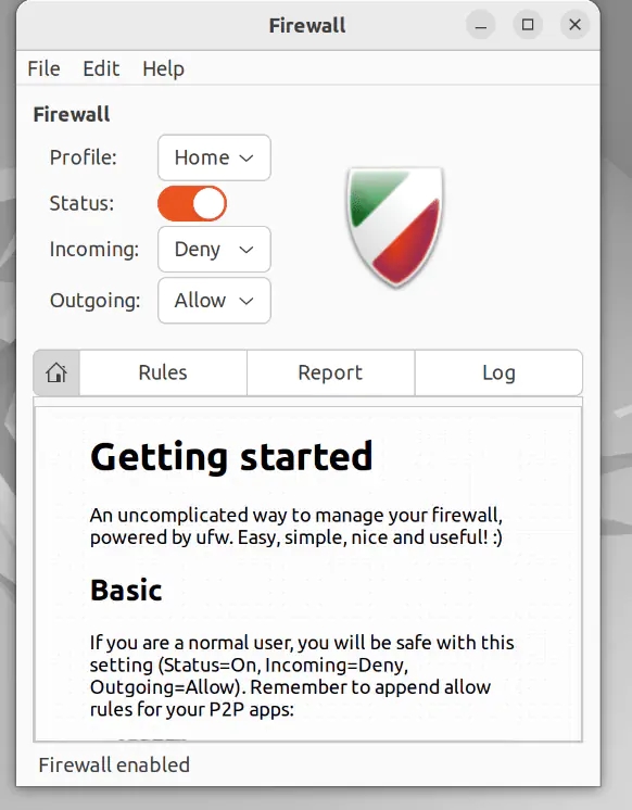 Когда установка завершится, GUFW будет готов к использованию.