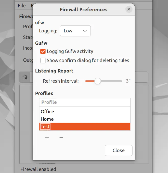Помимо трех основных профилей, GUFW позволяет создавать и удалять профили. Чтобы создать пользовательский или удалить существующий профиль, выполните следующие действия:
