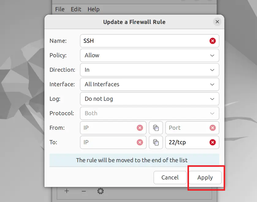Чтобы отредактировать существующее правило GUFW, выполните следующие действия: