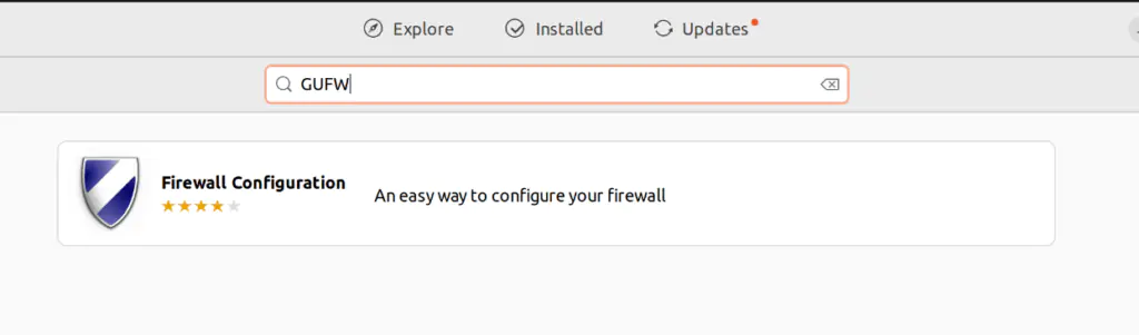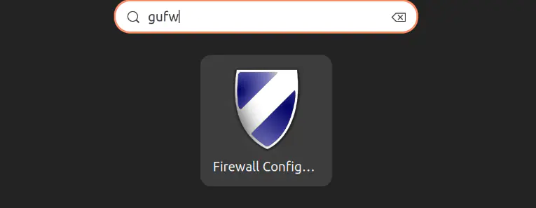 Также можно воспользоваться строкой поиска в системе Ubuntu и ввести GUFW. Первым результатом поиска будет программа Firewall Configuration. Щелкните по значку, чтобы запустить приложение.
