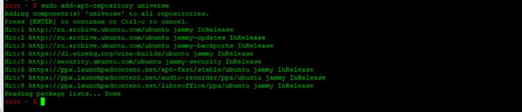 Включите репозиторий Universe с помощью следующей команды: