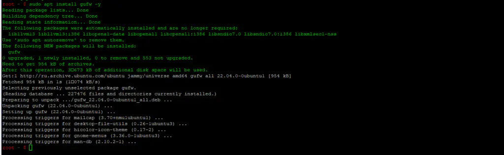 Дождитесь завершения установки. После этого GUFW будет готов к использованию.