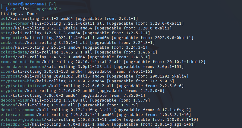 | 1 | apt list --upgradable |