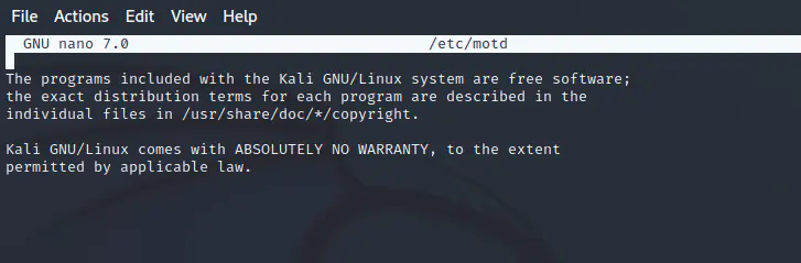 | 1 | sudo nano /etc/motd |