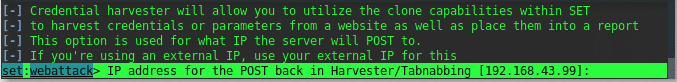 - Выбрать 3) Метод атаки "Harvester Attack"
