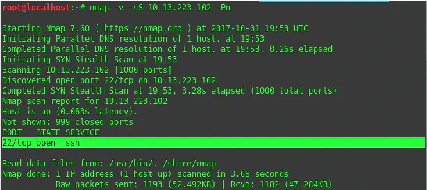 | 1 | nmap -v -sS [IP Target] -Pn |