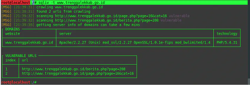 | 1 | sqliv -t www.trenggalekkab.go.id |