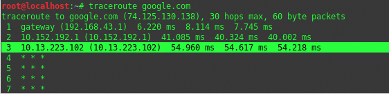 | 1 | traceroute google.com |