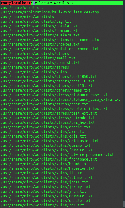 В Kali Linux существует множество списков паролей, выберите подходящий или просто воспользуйтесь файлом rockyou.txt, расположенным в каталоге /usr/share/wordlists/, как показано ниже: