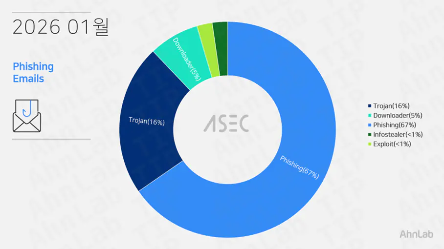 В январе 2026 года специалисты по информационной безопасности наблюдают классическую, но от того не менее эффективную тактику злоумышленников. Согласно ежемесячному отчёту о трендах фишинговых рассылок, подавляющее большинство угроз, скрывавшихся во вложениях писем, - 67% - составляли классические фишинговые страницы. Однако за сухими цифрами статистики скрывается более тревожная тенденция: параллельно растёт распространение сложных вредоносных программ, использующих для проникновения как известные уязвимости в программном обеспечении, так и методы социальной инженерии. Это сигнализирует о том, что злоумышленники комбинируют проверенные массовые методы с целенаправленными атаками, повышая общий уровень угроз для организаций и частных пользователей.