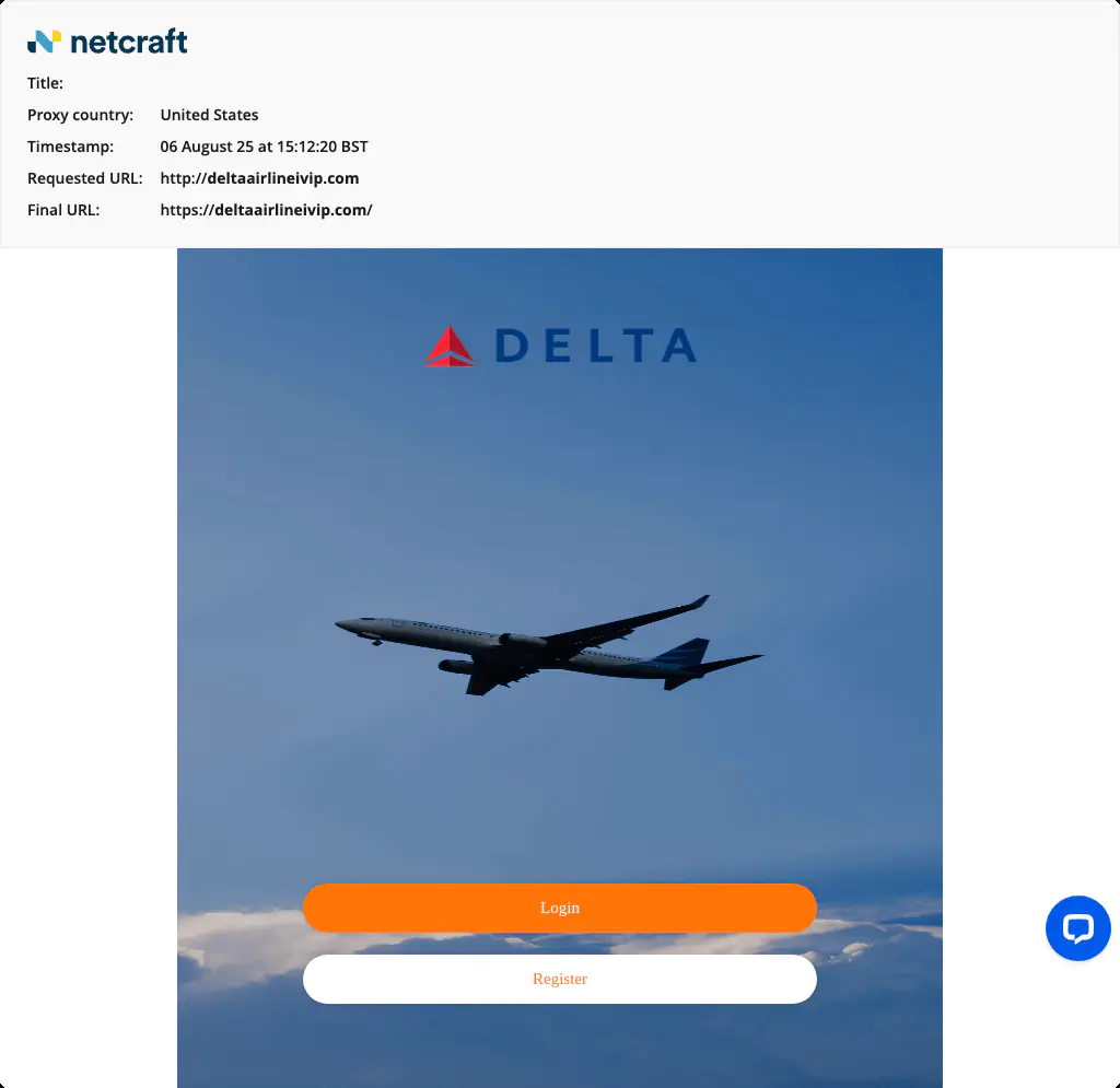 Технический анализ показал, что apex-домен deltaairlineivip[.]com имеет CNAME-запись, указывающую на s5d2cm8u[.]xmocloud[.]com, который связан с IP-адресами в сетевых блоках Autonomous System 59371, принадлежащей гонконгской хостинговой компании Dimension Network & Communication Limited (DNC). Netcraft ранее блокировала вредоносный контент, связанный с xmocloud и DNC, включакрипто-мошенничества, поддельные магазины и фишинговые сайты.