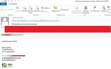 Письмо с вредоносным вложением (md5: AA36BA9F4DE5892F1DD427B7B2100B06) в архиве с паролем от потенциального клиента, отправленного менеджеру банка после предварительного телефонного разговора с ним.