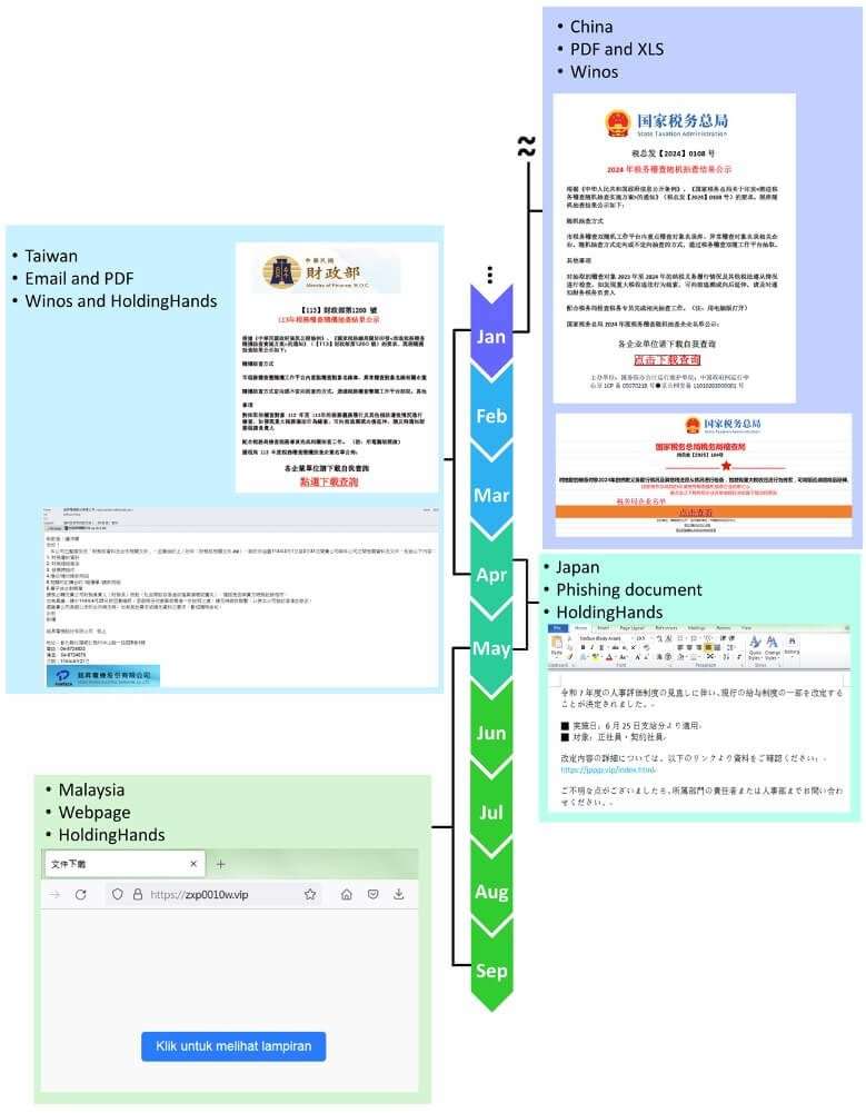 Более поздние атаки сместились на Малайзию. Аналитики связали эти кампании после обнаружения, что домен twczb[.]com, ранее ассоциировавшийся с фишингом на Тайвань, резолвился на тот же IP-адрес, что использовался в активности, нацеленной на Малайзию.