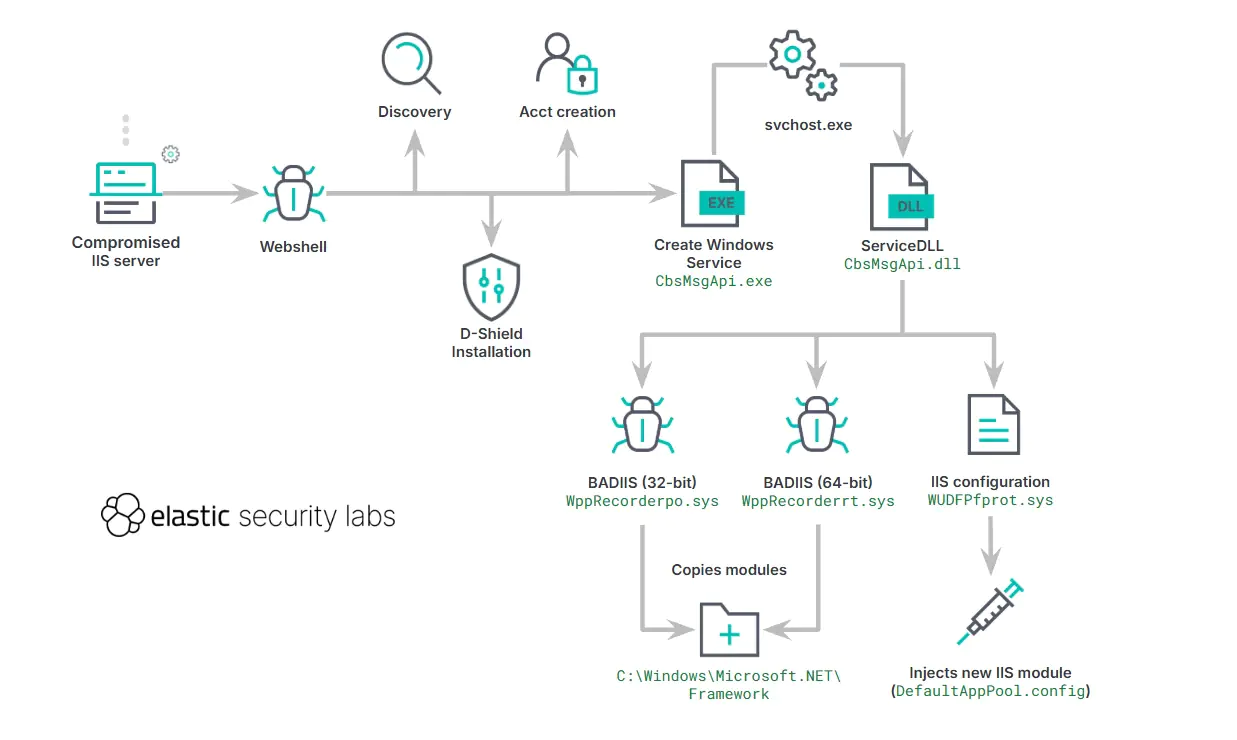 Технический анализ инцидента, наблюдаемого в ноябре, показал высокую скорость работы злоумышленников. От момента первоначального доступа до полного развертывания вредоносного модуля IIS прошло менее 17 минут. После получения доступа через веб-шелл злоумышленники быстро провели разведку, создали новую учетную запись администратора и развернули сервис Windows с названием WalletServiceInfo. Этот сервис загружал вредоносную DLL-библиотеку, которая, в свою очередь, отвечала за установку модулей BADIIS.