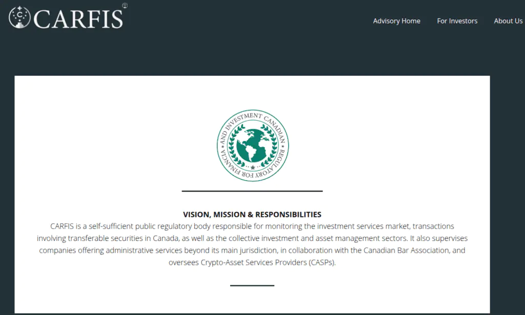 Особого внимания заслуживает домен refas-to[.]com, который ссылался на другую вымышленную регулирующую инстанцию - CARFIS, якобы канадский финансовый надзорный орган. Анализ показал, что хотя часть доменов уже была заблокирована или внесена в чёрные списки, значительное число сайтов остаются активными и продолжают привлекать жертв.