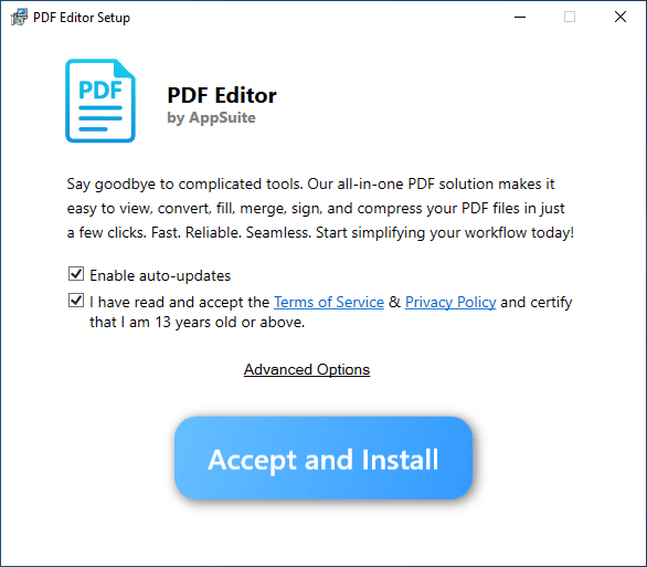 Типичный процесс заражения начинался с того, что пользователь, ищущий бесплатный PDF-редактор, сталкивался с вредоносной рекламой кампанией. Клик по объявлению перенаправлял на контролируемую злоумышленниками страницу загрузки, где пользователь скачивал и запускал установочный пакет Microsoft Installer (MSI). Установщик отображал диалоговое окно принятия лицензионного соглашения (EULA), что усиливало видимость легитимности и помогало обходить автоматические проверки безопасности, включая анализ в песочницах.