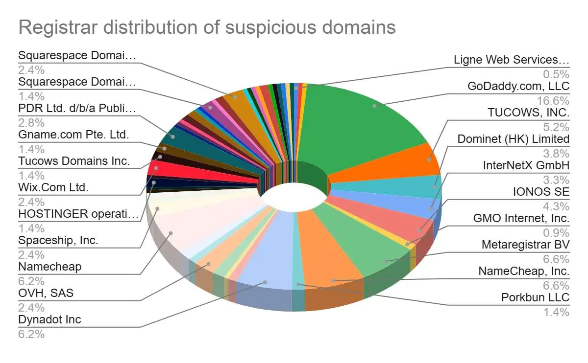 С технической точки зрения, большинство подозрительных доменов используют доменную зону .com (58,9%), однако заметную долю занимают и менее регулируемые зоны, такие как .online, .xyz и .shop. Это соответствует тактике создания дешёвой и одноразовой инфраструктуры. Также зафиксированы случаи типосквоттинга - регистрации доменов с опечатками в названиях брендов (например, fifaworldcupstadiucom вместо stadium).