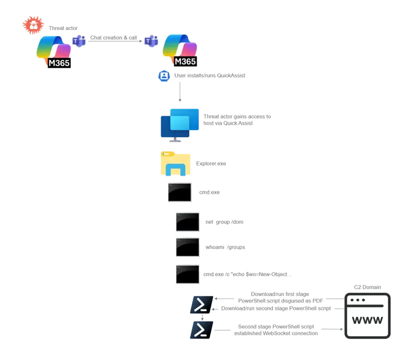 В сентябре 2025 года специалисты компании Field Effect начали отслеживание целенаправленной фишинг-кампании в Microsoft Teams, в ходе которой злоумышленники используют встроенный в Windows инструмент Quick Assist для удалённого контроля и внедрения вредоносных программ. Атака основана на социальной инженерии и эксплуатирует доверие сотрудников к внутренним IT-службам, что делает её особенно коварной.