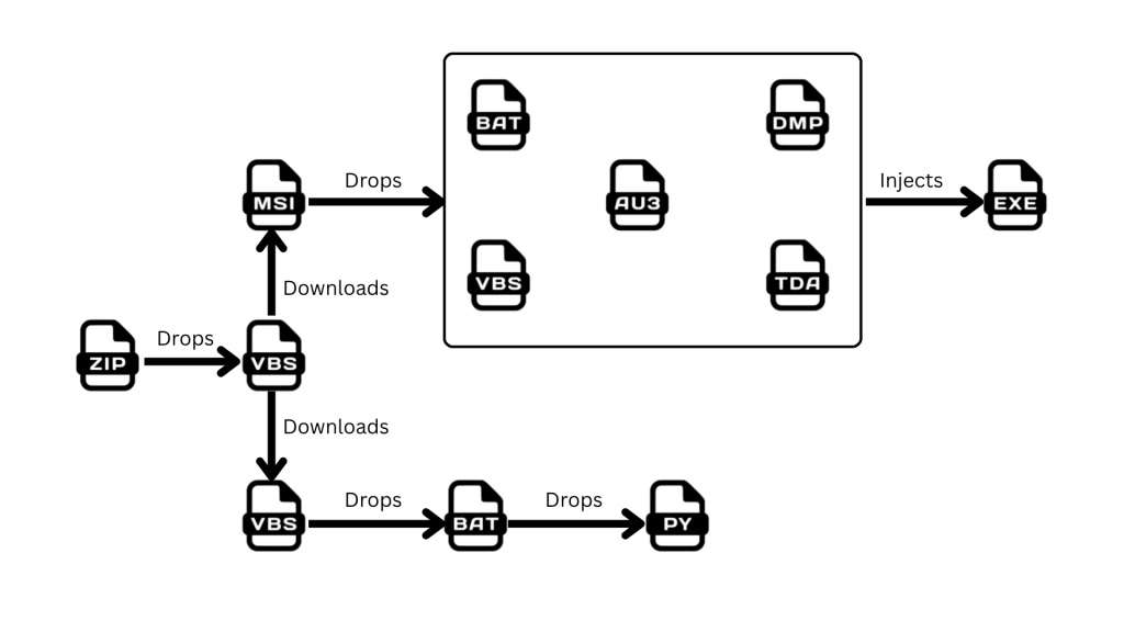 Кампания, получившая название Water-Saci, использует многоэтапный подход к компрометации систем. Атака начинается с фишингового письма, содержащего ZIP-архив со злонамеренным VBS-скриптом. Для обхода сигнатурных систем обнаружения скрипт применяет технику кодирования символами и XOR-шифрование.