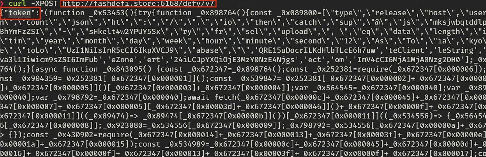 Одной из новых тактик, используемых злоумышленниками, стала реализация кода, который выполняет POST-запрос к внешнему домену, например, fashdefi[.]store, с последующим исполнением полученного содержимого через функцию eval(). Этот подход позволяет избежать прямого внедрения вредоносного кода в основной проект, что затрудняет его обнаружение с помощью статических методов анализа.