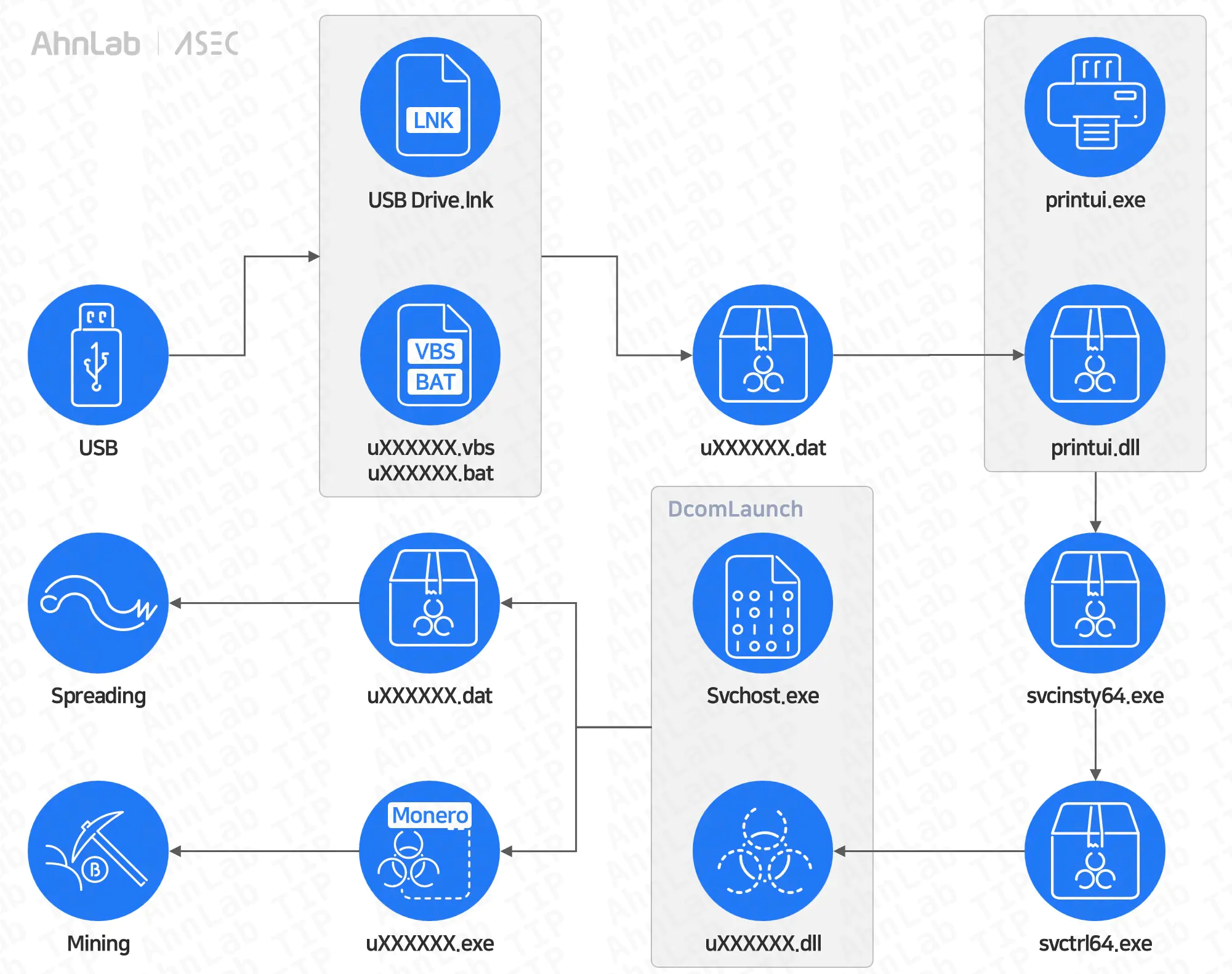 В феврале 2025 года южнокорейский центр мониторинга угроз ASEC сообщил о новой волне атак, в ходе которых вредоносное ПО для майнинга криптовалюты (криптомайнер) распространяется через USB-накопители. В июле того же года аналитики компании Mandiant подтвердили эти данные, классифицировав используемые образцы как DIRTYBULK и CUTFAIL. Хотя общая схема атаки не претерпела кардинальных изменений, злоумышленники начали применять новые модификации вредоносов, что требует пристального внимания.