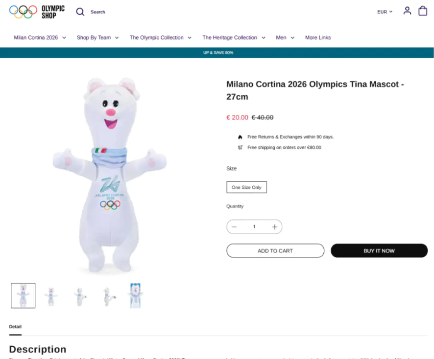 Талисманы Тина и Мило, созданные по эскизам итальянских школьников, стали настоящим хитом. Официальная плюшевая игрушка Тины высотой 27 сантиметров продается на сайте shop.olympics.com за 40 евро и уже значится как отсутствующая в наличии. Именно этот ажиотажный спрос и дефицит создали идеальные условия для мошенничества. Эксперты по кибербезопасности отмечают, что только за последнюю неделю было зарегистрировано около 20 доменных имен, имитирующих официальный олимпийский магазин.