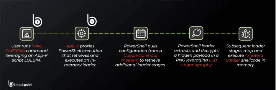 Аналитики центра мониторинга и реагирования на угрозы (SOC) компании Blackpoint выявили новую вредоносную кампанию, использующую фишинговые страницы с фейковой капчей (Fake CAPTCHA) для заражения систем. Особенностью атаки является сложная многоэтапная цепочка исполнения, предназначенная для максимальной скрытности и обхода традиционных средств защиты. В конечном итоге, кампания доставляет известный стилер (информационный вор) Amatera Stealer, однако основное внимание привлекает не финальная полезная нагрузка (payload), а изощренные методы ее доставки.