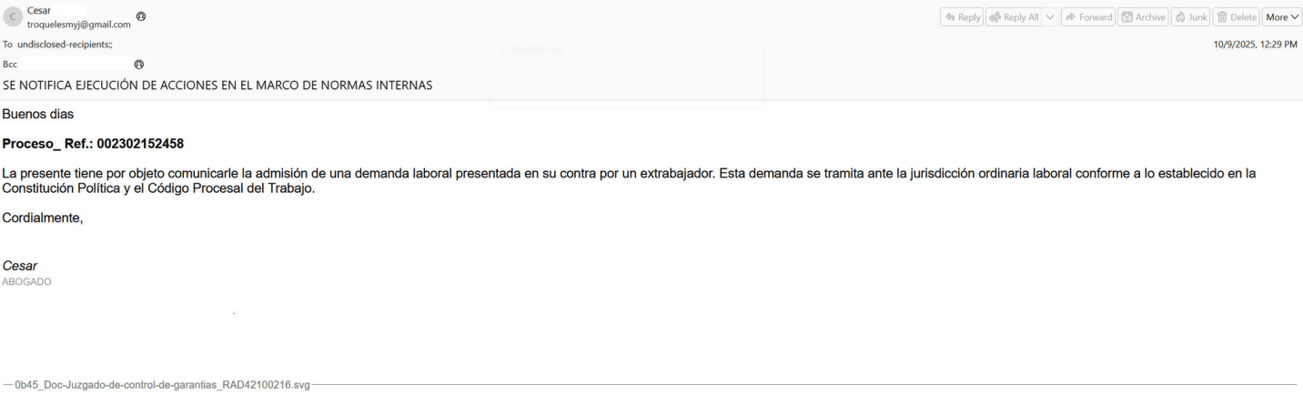 Специалисты IBM X-Force зафиксировали серию целевых фишинговых атак на испаноязычных пользователей, предположительно проживающих в Колумбии. В период с августа по октябрь 2025 года злоумышленники рассылали письма, маскирующиеся под официальные уведомления от Генеральной прокуратуры Колумбии. В сообщениях содержалась ссылка для загрузки «официального документа» из судебной информационной системы, который на самом деле являлся вредоносным исполняемым файлом.