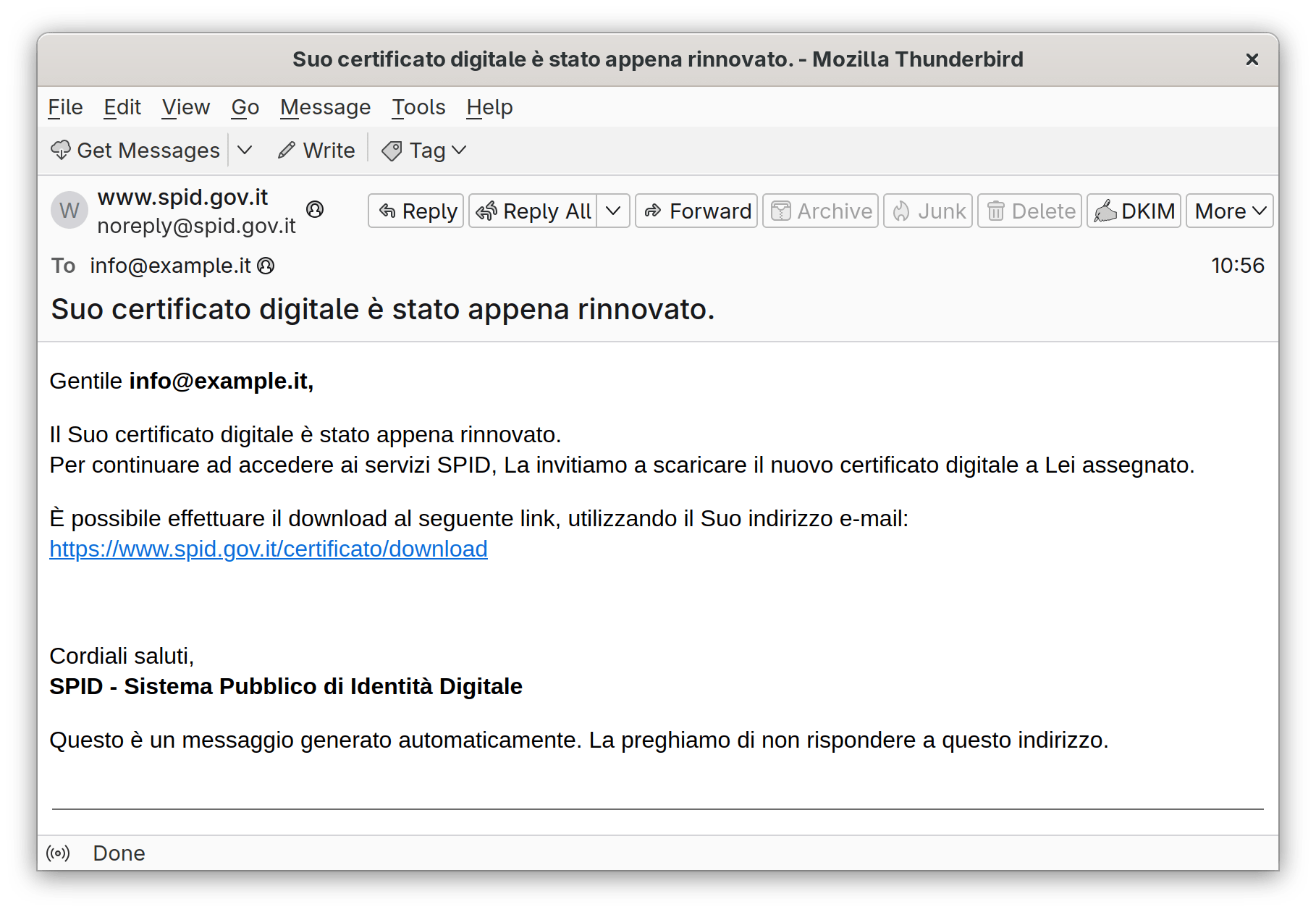 Специалисты CERT-AGID обращают внимание на то, что поддельные письма отправляются с адреса, имитирующего официальный noreply@spid.gov.it. Однако углубленный анализ показал, что рассылка ведется с серверов, не связанных с государственными системами. Важным признаком мошенничества является отсутствие цифровой подписи DKIM (DomainKeys Identified Mail), которая используется для подтверждения подлинности отправителя. Кроме того, атака возможна только в случаях, когда почтовый сервер получателя некорректно проверяет SPF (Sender Policy Framework) - метод, предназначенный для защиты от подделки адресов отправителя.
