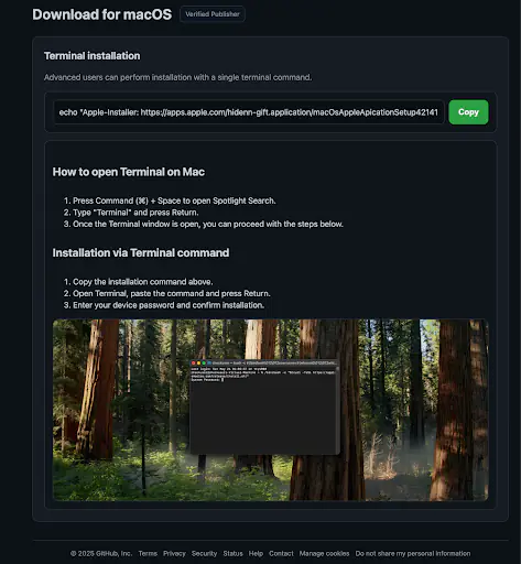 С технической точки зрения, в отличие от более ранних вариантов ClickFix, которые доставляли относительно читаемые скрипты, эта кампания использует оболочку в стиле «Матрешка», чтобы скрыть свою внутреннюю логику от сетевых сканеров и быстрого статического анализа. Вставленная команда не загружает стандартное приложение macOS напрямую. Вместо этого она извлекает внешне безобидный shell-скрипт, содержащий большую закодированную полезную нагрузку. Полученный скрипт использует конструкцию heredoc для передачи данных через конвейер в памяти: декодирование из Base64, затем распаковка через gunzip и, наконец, выполнение с помощью eval. Именно из-за этой вложенности значимая полезная нагрузка оказывается спрятана внутри сжатого блоба и становится читаемой только во время выполнения, что и дало название варианту. Такая оболочка скрывает внутреннюю логику внутри архива, который «распаковывается» в памяти и может не записываться на диск в виде чистого файла скрипта, что снижает видимость для файлового сканирования и усложняет базовый статический анализ.