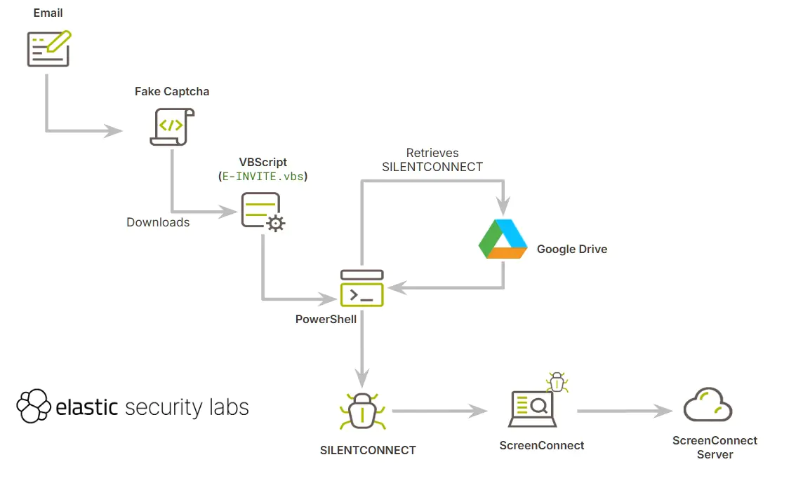 Скачанный скрипт, содержащий простую обфускацию с использованием детской сказки в качестве прикрытия, выполняет ключевую роль в цепочке заражения. После деобфускации он запускает команду PowerShell, которая, в свою очередь, загружает с Google Drive исходный код на C#. Этот код компилируется и выполняется непосредственно в памяти, минуя запись на диск, что является популярной техникой уклонения от сигнатурных антивирусов. Исследователи Elastic обнаружили, что финальной полезной нагрузкой этого многоэтапного процесса является установщик коммерческого продукта ConnectWise ScreenConnect - инструмента для удалённого мониторинга и управления (RMM).