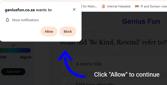 Расследование показало, что источником проблемы чаще всего становятся сайты с викторинами, которые активно продвигаются в интернете. Их тематика варьируется: от проверки знаний по истории и географии до вопросов, ориентированных на жителей конкретных стран, таких как Канада, Германия, Франция, Япония и США. Главная цель этих ресурсов - не развлечь посетителя, а заманить его на кнопку «Начать викторину». Однако перед началом теста пользователь видит хитро сконструированную подсказку с текстом вроде «Нажмите "Разрешить", чтобы продолжить» и стрелкой, указывающей на стандартное системное окно браузера с запросом на отправку уведомлений. Многие, не вчитываясь, соглашаются, давая сайту разрешение показывать уведомления даже тогда, когда браузер закрыт.