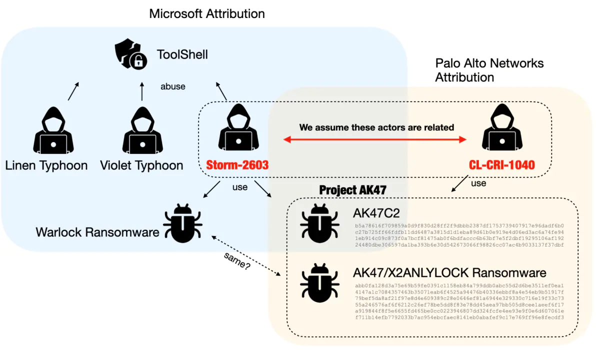 Согласно данным Unit 42, кластер активности CL-CRI-1040 демонстрирует высокую степень соответствия с описанием Storm-2603 - группой, которую Microsoft связывает с эксплуатацией уязвимостей в SharePoint (CVE-2025-49704, CVE-2025-49706, CVE-2025-53770, CVE-2025-53771) через цепочку эксплойтов ToolShell. Хотя Microsoft идентифицирует Storm-2603 как китайскую группу, Unit 42 указывает на недостаточность прямых доказательств для окончательной атрибуции к государственным структурам. Косвенным указанием на возможную связь с китайским сегментом служит использование в CL-CRI-1040 IIS-бэкдора, популярного в китайской хакерской среде.
