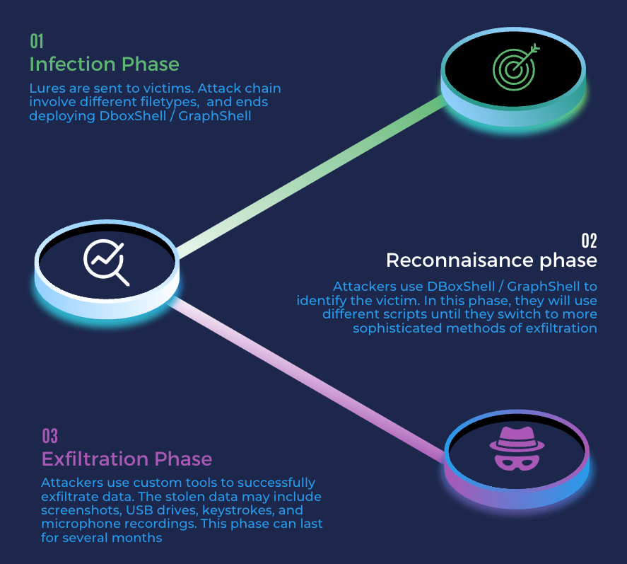DBoxShell - это вредоносное ПО, использующее облачные сервисы хранения данных в качестве командно-контрольного механизма (C&C). Этот этап служит точкой входа для злоумышленников, позволяя им оценить, интересны ли цели или нет, что означает, что на этом этапе они будут использовать различные инструменты.