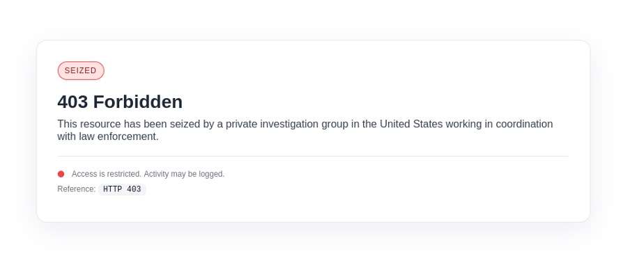 Попытка посещения основного домена приводит к показу фейкового уведомления о конфискации, однако доступ к панели управления по пути "/login" остаётся активным. Интерфейс панели высокого качества, написан с использованием фреймворка Tailwind и включает анимации, описывая себя как «передовую платформу для атак», что окончательно подтверждает её nature как сервиса по найму для DDoS-атак.