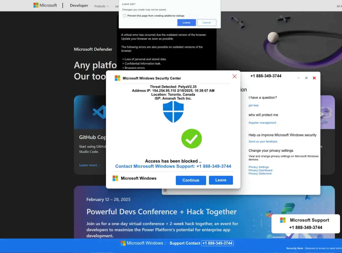 Мошеннические страницы используют методы полного захвата экрана и скрипты, блокирующие закрытие браузера, чтобы принудить пользователей позвонить на подставные линии технической поддержки. Когда жертвы звонят, злоумышленники с помощью инструментов удаленного доступа создают фиктивные обнаружения вредоносных программ и требуют оплаты за несуществующие услуги по очистке системы. Для трафика, который не соответствует целевым критериям, система перенаправляет пользователей на другие мошеннические схемы, включая сайты знакомств, криптовалютные аферы или лотереи.