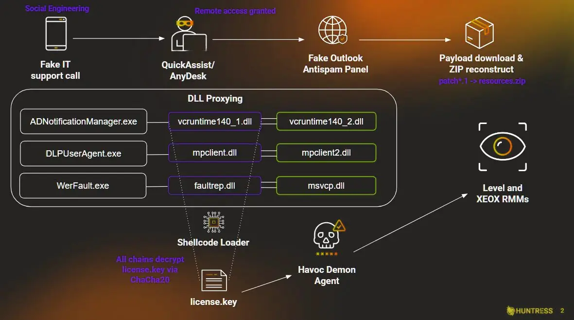 Индустрия киберугроз продолжает демонстрировать тревожную тенденцию: методы, некогда считавшиеся прерогативой продвинутых группировок, работающих против крупного бизнеса и государственных структур, теперь массово используются в атаках на компании любого размера. Особенно показателен сценарий, где традиционная социальная инженерия становится лишь отправной точкой для развертывания сложного, модифицированного инструментария пост-эксплуатации. Наглядным примером такой эволюции стал недавний кластер инцидентов, расследованный специалистами Huntress в феврале 2026 года.