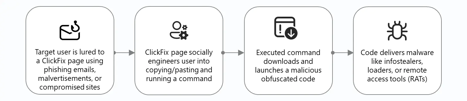 Техника ClickFix основана на манипулировании пользователями: злоумышленники эксплуатируют естественное желание людей решить мелкие технические проблемы или пройти проверку, например, CAPTCHA. Пользователям показываются инструкции, побуждающие их копировать, вставлять и запускать команды непосредственно в диалоговом окне «Выполнить» Windows, Windows Terminal или PowerShell. Часто эти атаки сочетаются с фишингом, вредоносной рекламой и компрометацией веб-сайтов, причём многие из них имитируют легитимные бренды и организации, чтобы вызвать меньше подозрений.