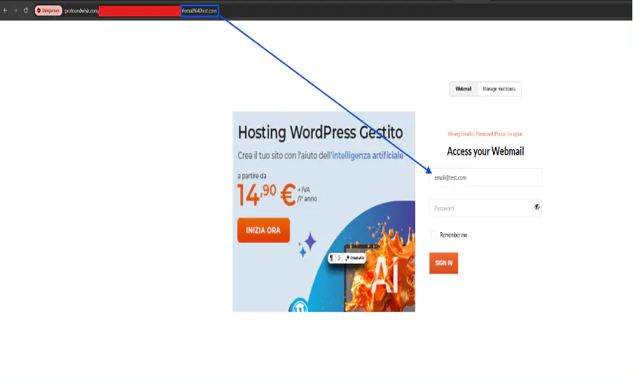 Атака обычно начинается с классической целевой фишинговой приманки. Жертвы получают электронное письмо, предназначенное для создания чувства срочности, такое как предупреждение об истекающей услуге или неудачном платеже - тактика, о которой сама Aruba предупреждает своих клиентов. Письмо содержит ссылку на одну из многих фишинговых страниц, которые тщательно имитируют официальный портал входа в веб-почту Aruba.it.