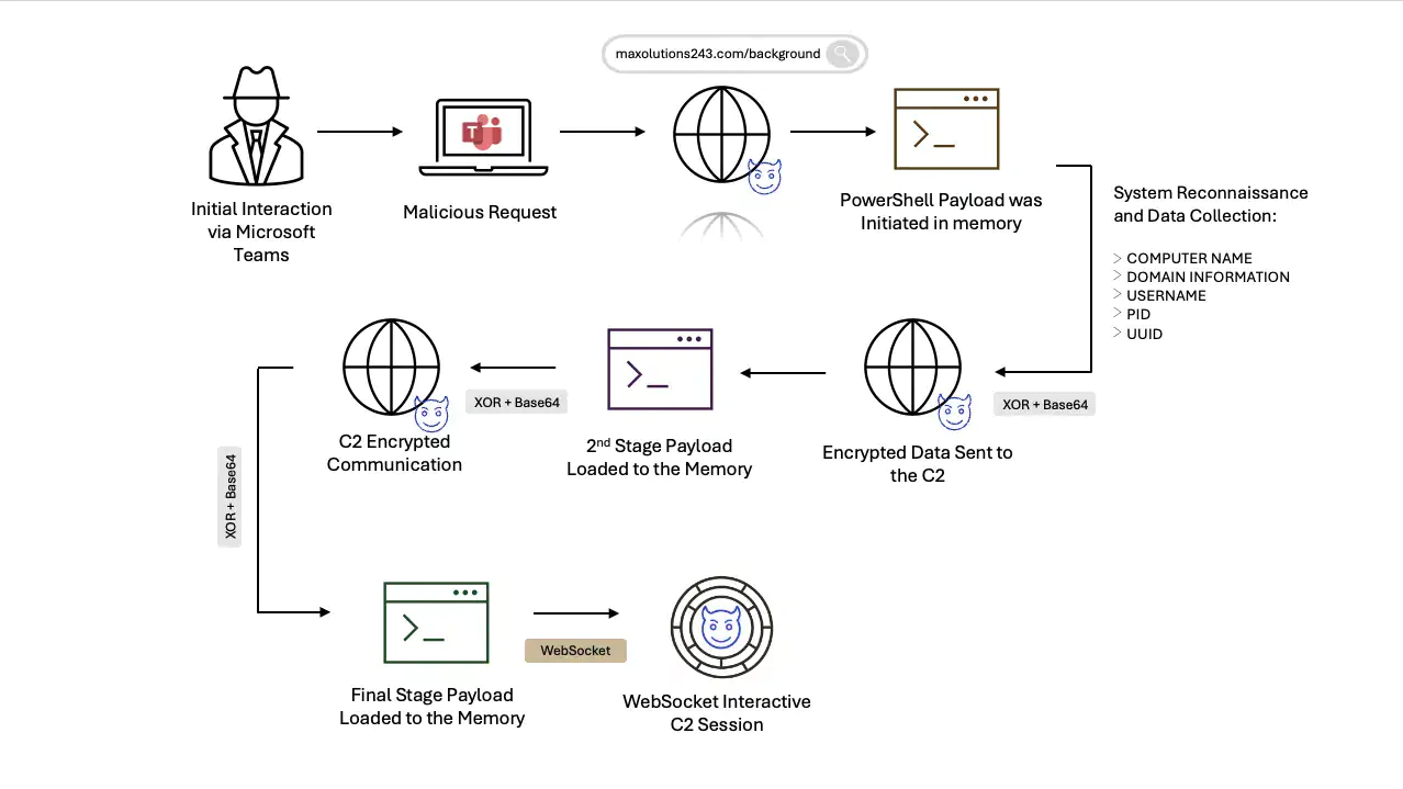 Атака началась с классического сценария вишинга: сотрудник компании получил в Microsoft Teams приглашение на встречу от лица, представившегося специалистом технической поддержки. В ходе сеанса связи, вероятно с использованием демонстрации экрана, злоумышленнику удалось убедить жертву выполнить ряд действий, которые запустили вредоносную цепочку. Этот метод, по сути, заменяет собой переход по фишинговой ссылке в email, используя доверие к внутреннему инструменту коммуникации и авторитет службы поддержки. Важно отметить, что конечным результатом этой операции стало внедрение бэкдора PhantomBackdoor, о котором ранее сообщала компания SentinelOne. Этот вредоносный инструмент представляет собой многостадийную программу с удалённым доступом (RAT), использующую для связи с оператором протокол WebSocket, что делает его трафик менее заметным на фоне легитимного веб-трафика.