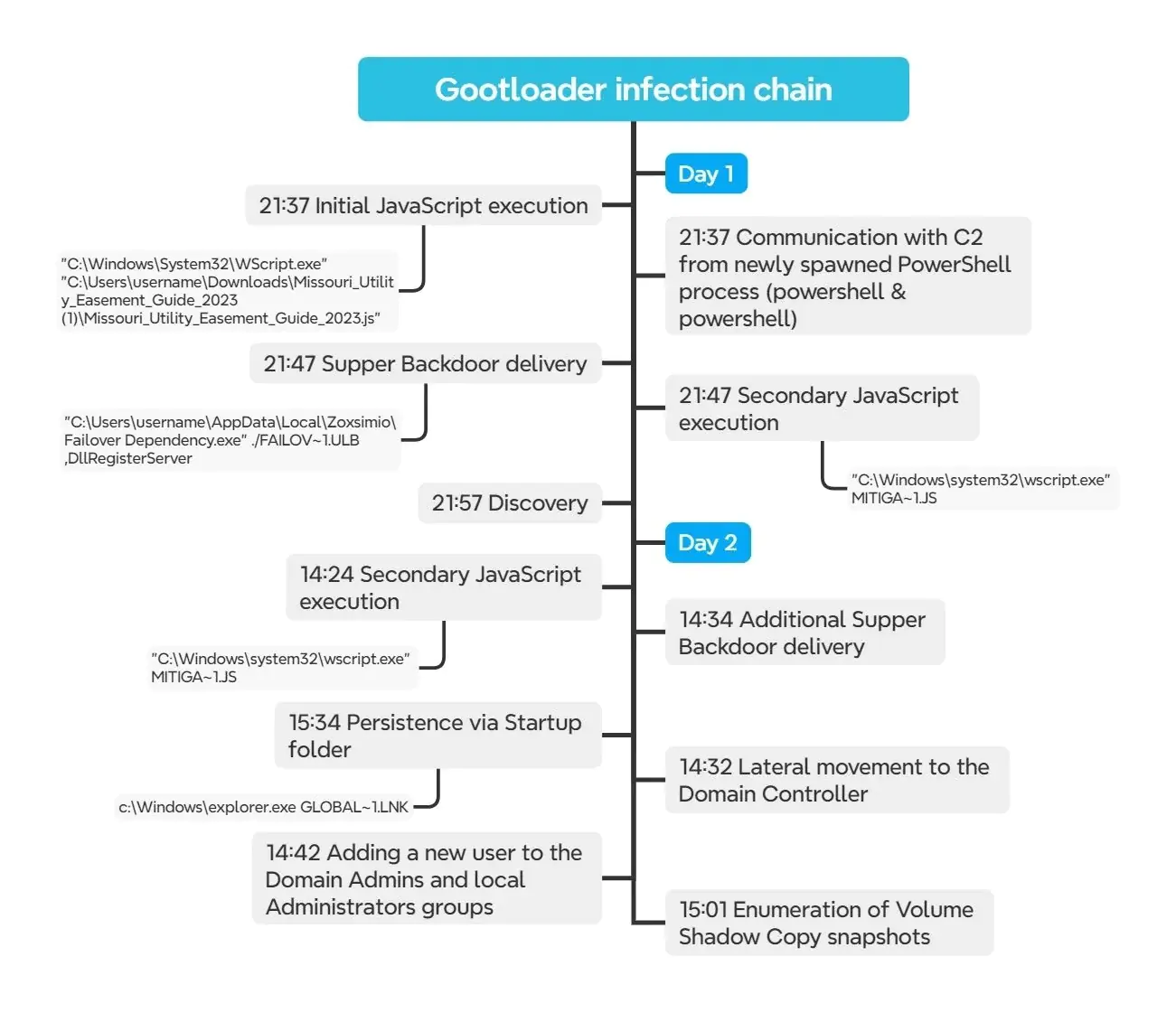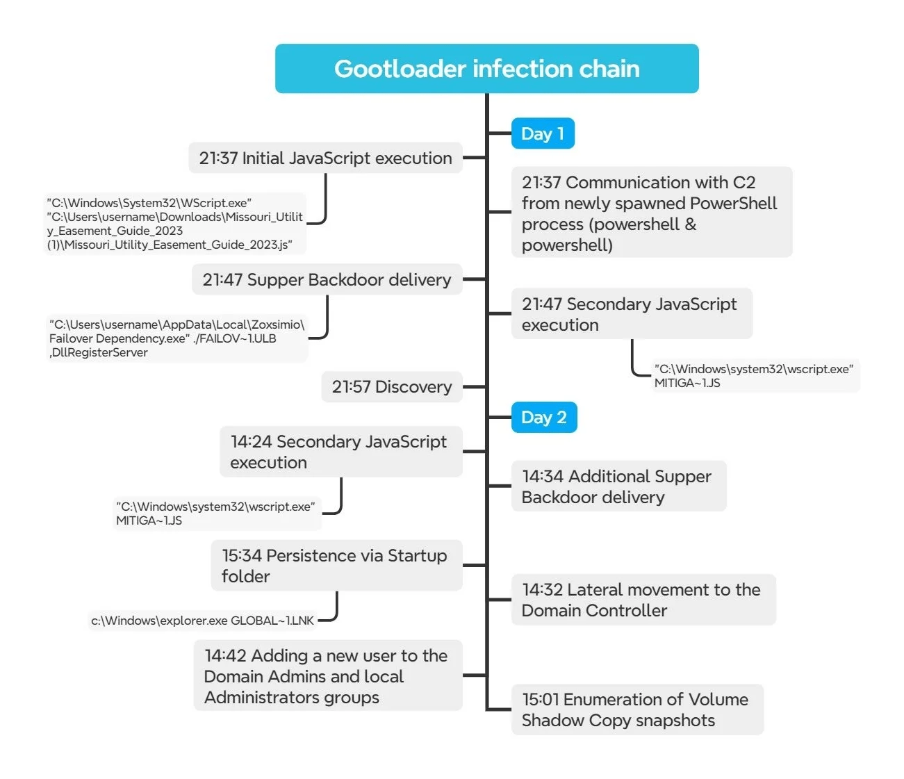 Активность загрузкика Gootloader возобновилась с новыми методами обфускации и ускоренными темпами атак, что демонстрируют недавние случаи заражения. Как показали исследования Huntress, три инцидента с Gootloader, зафиксированные с 27 октября, привели к компрометации доменных контроллеров в течение всего 17 часов после первоначального заражения.