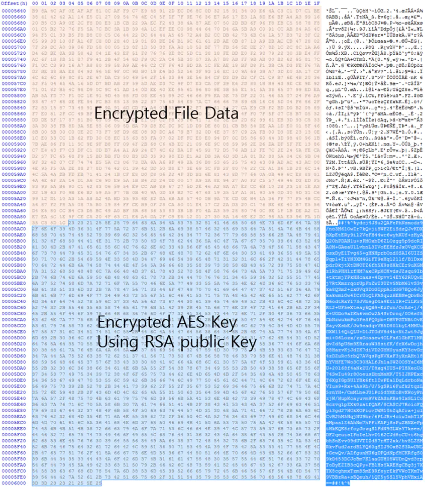 Архитектура зашифрованного файла включает данные, зашифрованные с помощью симметричного ключа AES, который затем шифруется асимметричным алгоритмом RSA и помещается в конец файла. Это стандартный подход, обеспечивающий криптостойкость. Примечательно, что NightSpire не удаляет теневые копии Volume Shadow Copy и не изменяет фон рабочего стола, что несколько отличает его от других современных ransomware.